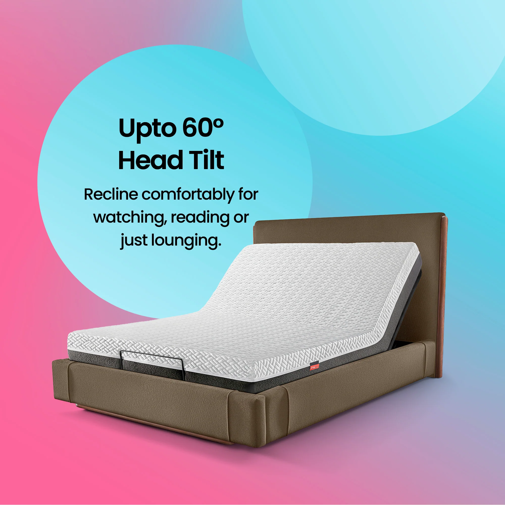 With a head tilt of up to 60°, this recliner-like bed lets you sit up comfortably without turning pillows into a DIY setup. Watching TV, reading a book, or answering emails from bed? Easy, comfy, and easy on your neck.